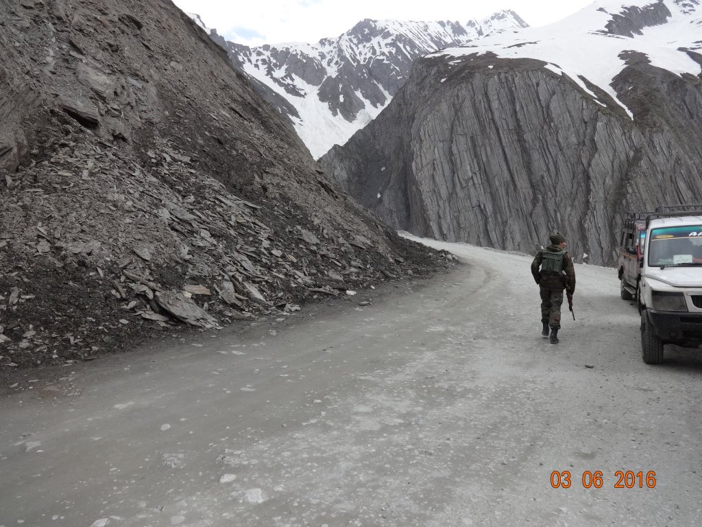 The road was a treacherous lot with loose gravel, hair-pin bends and narrow space barely fitting one vehicle. We spotted multiple Indian Army convoys en-route. The entire experience was somewhat scary but once we reached Zozila pass, we indulged ourselves into a sledge ride, hot plate of maggi and nun-chaai!