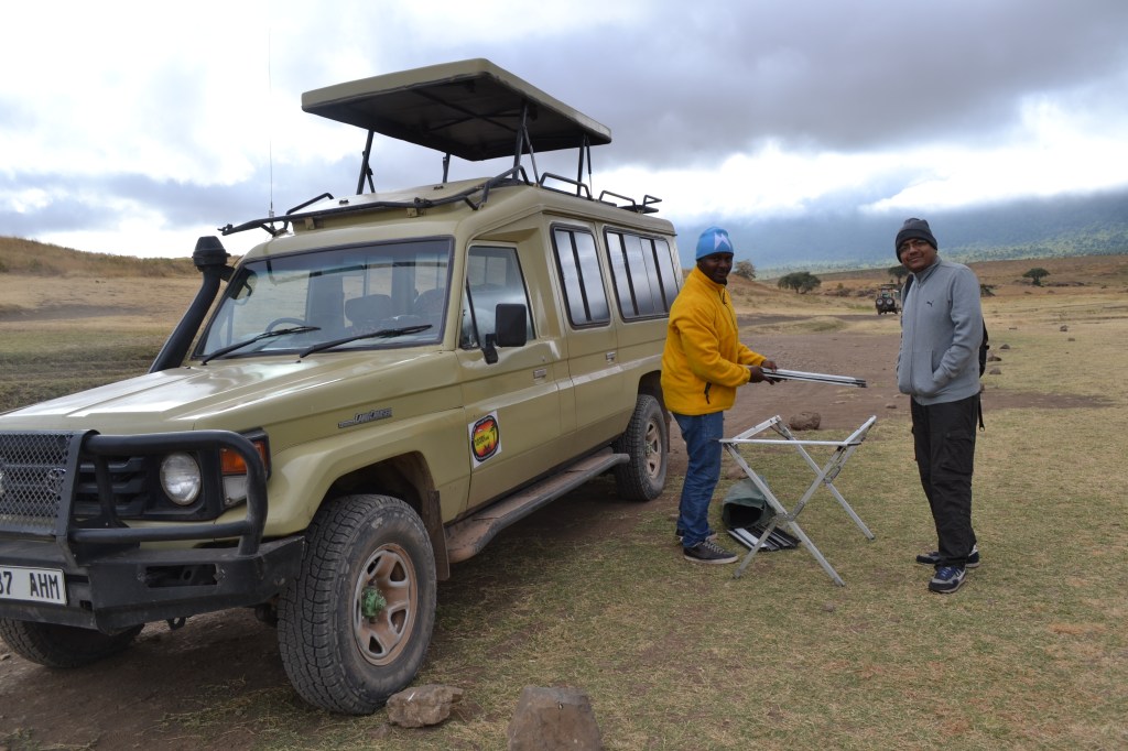We started descend to the NgoroNgoro crater and soon we spotted Red Flamingos by a lake. The only downside of the day was not able to spot any elusive Rhinos. I think to make up for it, Mr. X had an alternate plan to have lunch in the open by the side of hippo pool.