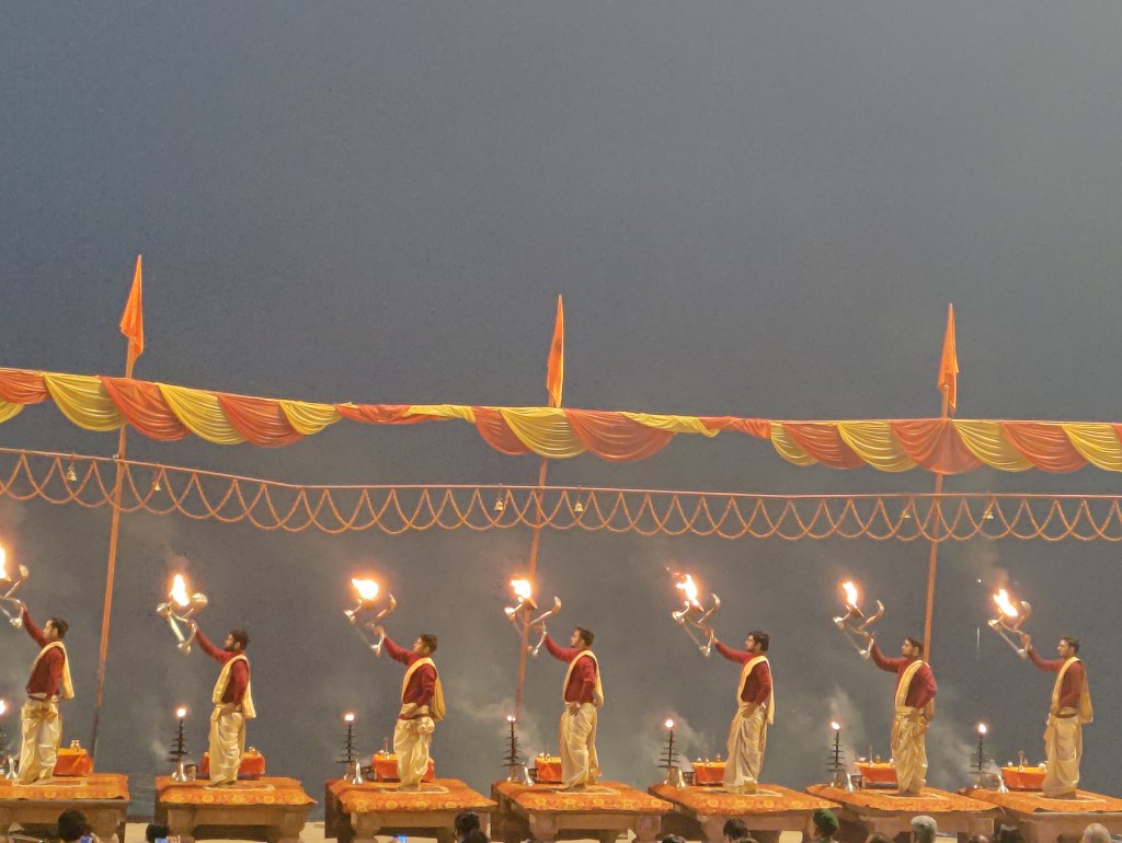 There is a hidden gem in the city, very less talked about, which is Subah-e-Banaras Aarti in Assi Ghat. Contrary to the other more popular evening Ganga Aarti, this happens before sun rises and hence relatively less crowded. We left our stay very early in the morning and took a tuk-tuk to reach Assi Ghat to witness this event.