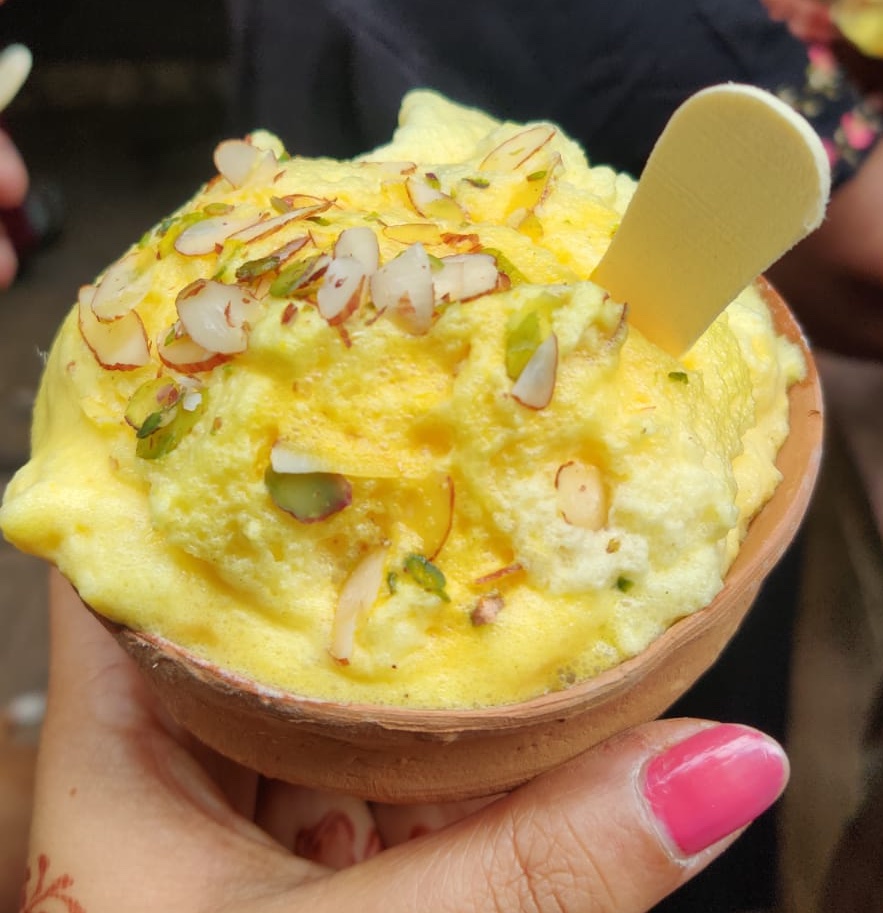 Our next gastronomical stop was Sreeji sweet shop for their famed Malaiyo, a dish which is only available during winters and morning time!